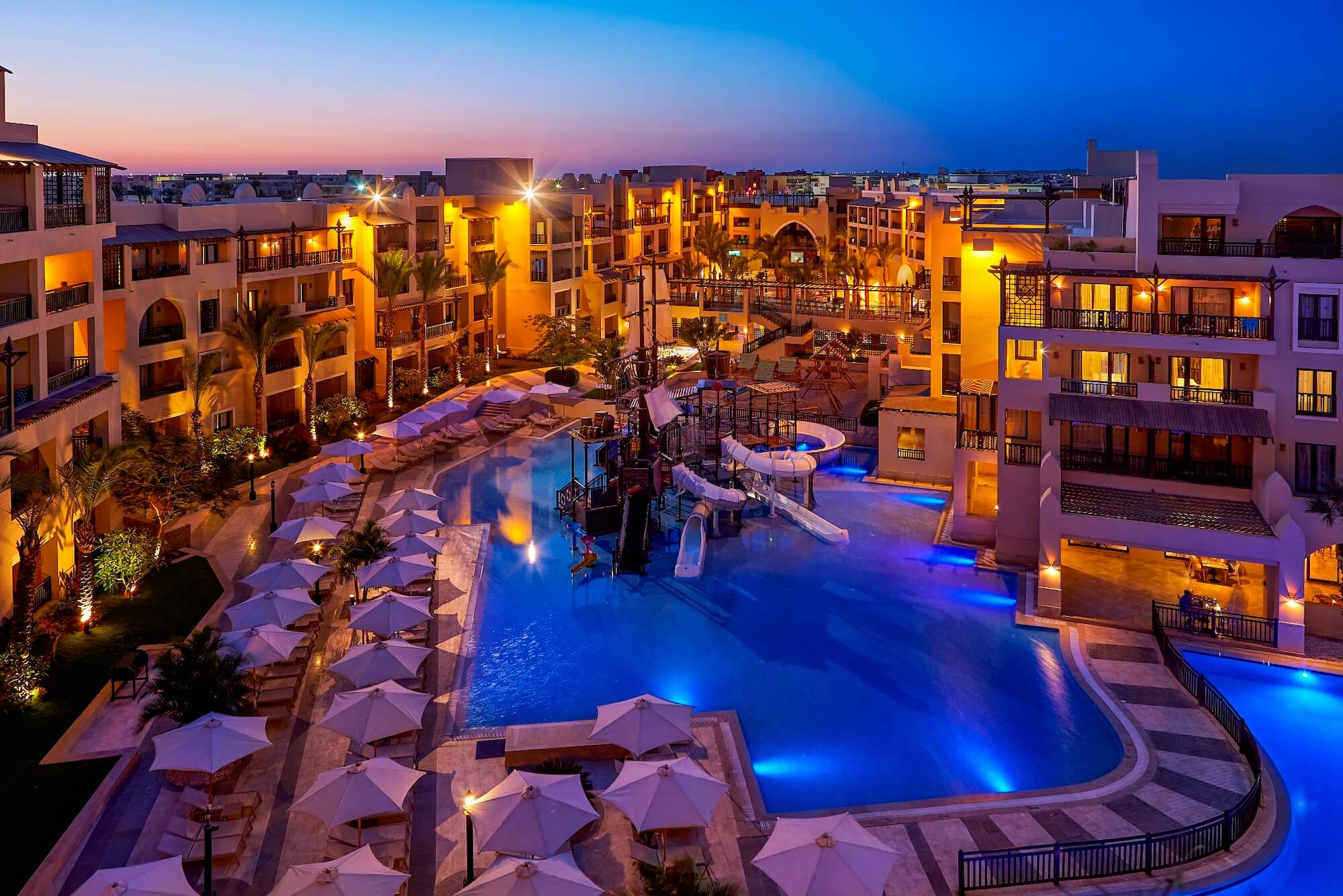Steigenberger Aqua Magic is the hippest family resort in the Red Sea. It is a five-star hotel that embraces 10 restaurants and bars, along with its 718 rooms, of which more than 40% are family suites. The hotel has excellent aquatic features, including 9 large heated pools with an adult-only area and a private beach. The Aqua Park, the Aqua Play™ water feature, the Lazy River, and the kids club. The hotel’s expansive wet and dry activity spaces are it’s focal points.